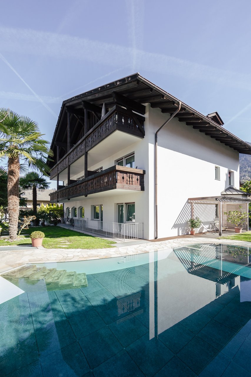 Entspannen Sie im Palmengarten mit Gartenlounge, Holzpergola und Sonnenliegen, für Erfrischung sorgt unser solarbeheizter Salzwasserpool mit Massageliege und Wasserfall. Ein besonderes Wohlfühlerlebnis bietet die Infrarotkabine mit Farbtherapie und Musik. Unser gesamter Wasser-Haushalt wird mit Grander-Wasser (belebtes Trinkwasser) versorgt.
